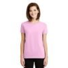 100% cotton 90/10 cotton/poly (Sport Grey) 50/50 cotton/poly (Dark Heather Safety Green Safety Pink) Seamless double-needle 5/8 collar. Feminine-inspired styling t-shirt. Due to the nature of 50/50 cotton/poly neon fabrics special care must be taken throughout the printing process. Complies with CPSIA.