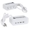 Upgrade your charging hub with our ABS fireproof AC outlet, 3 standard outlets, and 2 USB + 2 USB-C ports for 7-device simultaneous charging. A QR code is printed on each item providing access to the latest user manual. Flexible 5-ft cord, fast charging, and robust safety features. FCC and ETL certified for quality and safety. Elevate your charging experience! Complies with OU, Prop 65. 4.75″ L x 2.5″ W x 1.875″ H