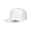 65% polyester, 35% cotton;5-panel, structured, high-profile; Eight-row stitching on flat visor; 4″ crown; Hard buckram backed front panels; Matching undervisor; Plastic adjustable closure;